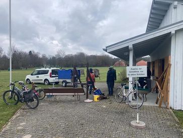 Eine kleine, aber tatkräftige Gruppe war heute bei schönstem Wetter fleißig, um unseren Bogenplatz endgültig aus dem Winterschlaf zu holen.